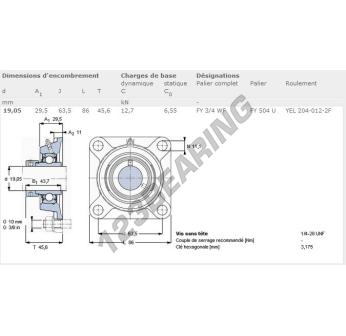 Das Stehlagereinheiten / Flanschlagereinheiten 4- Loch bekannt als FY3-4-WF-SKF SKF, hat einen Wellendurchmesser von 19.05 mm und einen Befestigungsabstand von 63.5 mm. Diese Referenz wird aus Gusseisen hergestellt und der Klemmtyp ist .