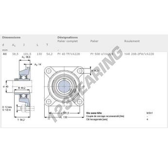 Das Stehlagereinheiten / Flanschlagereinheiten 4- Loch bekannt als FY40-TF-VA228-SKF SKF, hat einen Wellendurchmesser von 40 mm und einen Befestigungsabstand von 101.5 mm. Diese Referenz wird aus Gusseisen hergestellt und der Klemmtyp ist .