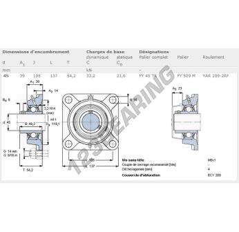 Das Stehlagereinheiten / Flanschlagereinheiten 4- Loch bekannt als FY45-TR-SKF SKF, hat einen Wellendurchmesser von 45 mm und einen Befestigungsabstand von 105 mm. Diese Referenz wird aus Gusseisen hergestellt und der Klemmtyp ist .