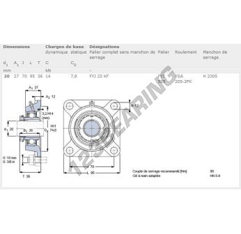 Das Stehlagereinheiten / Flanschlagereinheiten 4- Loch bekannt als FYJ25-KF-SKF SKF, hat einen Wellendurchmesser von 20 mm und einen Befestigungsabstand von 70 mm. Diese Referenz wird aus Gusseisen hergestellt und der Klemmtyp ist .