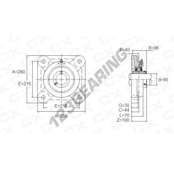 Das Stehlagereinheiten / Flanschlagereinheiten 4- Loch bekannt als UCF318 Generisches, hat einen Wellendurchmesser von 90 mm und einen Befestigungsabstand von 216 mm. Diese Referenz wird aus Gusseisen hergestellt und der Klemmtyp ist .