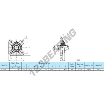 Das Stehlagereinheiten / Flanschlagereinheiten 4- Loch bekannt als UCFX18 Generisches, hat einen Wellendurchmesser von 90 mm und einen Befestigungsabstand von 171 mm. Diese Referenz wird aus Gusseisen hergestellt und der Klemmtyp ist .