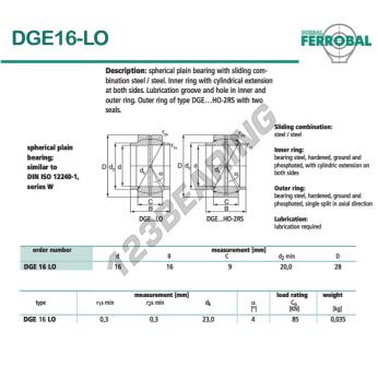 Das Gelenklager Ge bekannt als GE16-LO-DURBAL DURBAL hat einen Innendurchmesser von 16 mm, einen Außendurchmesser von 28 mm und einer Dicke von 9 mm.