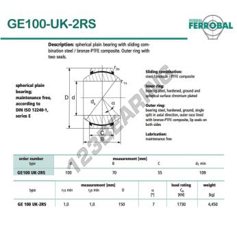 Das Gelenklager Geew bekannt als GE100-UK-2RS-DURBAL DURBAL hat einen Innendurchmesser von 100 mm, einen Außendurchmesser von 150 mm und einer Dicke von 55 mm.