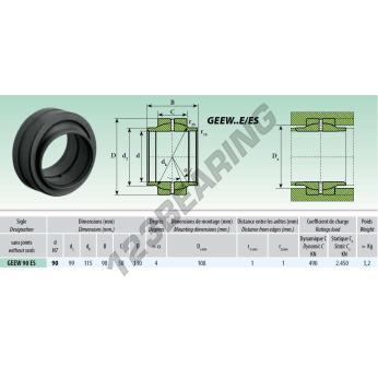 Das Gelenklager Geew bekannt als GEEW090-ES Generisches hat einen Innendurchmesser von 90 mm, einen Außendurchmesser von 130 mm und einer Dicke von 90 mm.