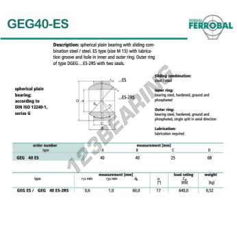 Das Gelenklager Geg bekannt als GEG40-ES-DURBAL DURBAL hat einen Innendurchmesser von 40 mm, einen Außendurchmesser von 68 mm und einer Dicke von 25 mm.