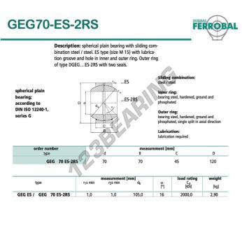 Das Gelenklager Geg bekannt als GEG70-ES-2RS-DURBAL DURBAL hat einen Innendurchmesser von 70 mm, einen Außendurchmesser von 120 mm und einer Dicke von 45 mm.