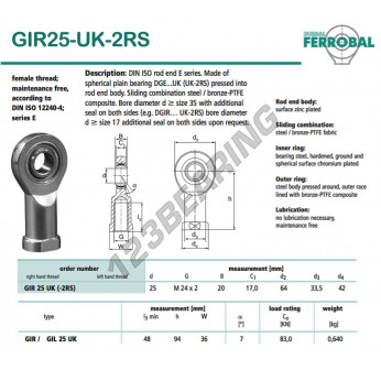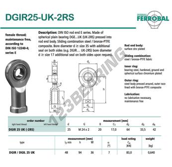 Das Gelenkköpfe Si bekannt als GIR25-UK-2RS-DURBAL DURBAL hat einen Innendurchmesser von 25 mm, einen Außendurchmesser von 64 mm und einer Dicke von 20 mm.