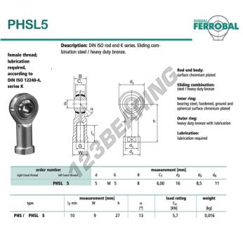 Das Gelenkköpfe Si bekannt als PHSL5-DURBAL DURBAL hat einen Innendurchmesser von 5 mm, einen Außendurchmesser von 16 mm und einer Dicke von 8 mm.