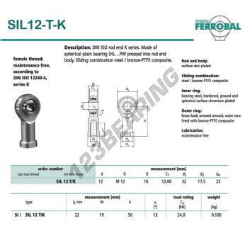 Das Gelenkköpfe Si bekannt als SIL12-T-K-DURBAL DURBAL hat einen Innendurchmesser von 12 mm, einen Außendurchmesser von 32 mm und einer Dicke von 16 mm.