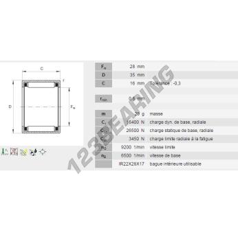 Das Nadelhülsenlager, bekannt als HK2816-BK-INA INA, hat einen Innendurchmesser von 28 mm, einen Außendurchmesser von 35 mm und eine Dicke von 16 mm.