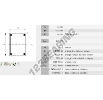 Das Nadelhülsenlager, bekannt als HK4516-A-HLA-INA INA, hat einen Innendurchmesser von 45 mm, einen Außendurchmesser von 52 mm und eine Dicke von 16 mm.