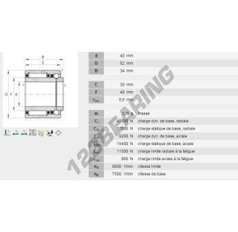 Das Axial-nadellager , bekannt als NKIB5908-INA INA, hat einen Innendurchmesser von 40 mm, einen Außendurchmesser von 62 mm und eine Dicke von 34 mm.