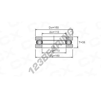 Das Axialrillenkugellager, bekannt als 51222 Generisches, hat einen Innendurchmesser von 110 mm, einen Außendurchmesser von 160 mm und eine Dicke von 38 mm.