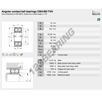 Das Rillenkugellager, bekannt als 3304-BD-TVH-FAG FAG, hat einen Innendurchmesser von 20 mm, einen Außendurchmesser von 52 mm und eine Dicke von 22.2 mm.