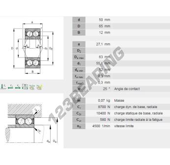 Das Rillenkugellager, bekannt als 3810-B-2RSR-TVH-INA INA, hat einen Innendurchmesser von 50 mm, einen Außendurchmesser von 65 mm und eine Dicke von 12 mm.