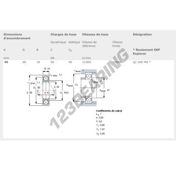 Das Rillenkugellager, bekannt als QJ208-MA-SKF SKF, hat einen Innendurchmesser von 40 mm, einen Außendurchmesser von 80 mm und eine Dicke von 18 mm.
