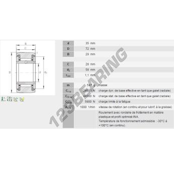 Das Laufrollen, bekannt als NATR35-PP-INA INA, hat einen Innendurchmesser von 35 mm, einen Außendurchmesser von 72 mm und eine Dicke von 29 mm.