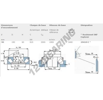 Das Rollenlager, bekannt als 29418-E-SKF SKF, hat einen Innendurchmesser von 90 mm, einen Außendurchmesser von 190 mm und eine Dicke von 60 mm.