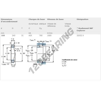 Das Kegelrollenlager, bekannt als 32032X-SKF SKF, hat einen Innendurchmesser von 160 mm, einen Außendurchmesser von 240 mm und eine Dicke von 51 mm.