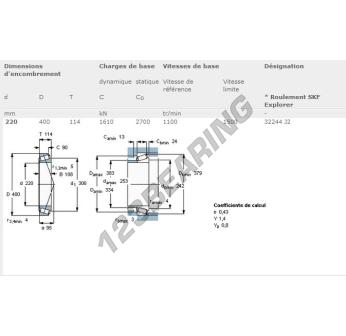 Das Kegelrollenlager, bekannt als 32244-J2-SKF SKF, hat einen Innendurchmesser von 220 mm, einen Außendurchmesser von 400 mm und eine Dicke von 114 mm.