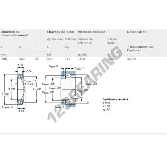 Das Kegelrollenlager, bekannt als 32938-SKF SKF, hat einen Innendurchmesser von 190 mm, einen Außendurchmesser von 260 mm und eine Dicke von 45 mm.