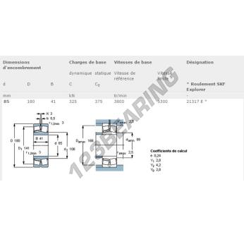 Das Pendelrollenlager, bekannt als 21317-E-SKF SKF, hat einen Innendurchmesser von 85 mm, einen Außendurchmesser von 180 mm und eine Dicke von 41 mm.