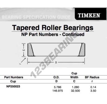 Das Schüssel, bekannt als NP250023-TIMKEN TIMKEN, hat einen Innendurchmesser von mm, einen Außendurchmesser von 146.975 mm und eine Dicke von 32.5 mm.