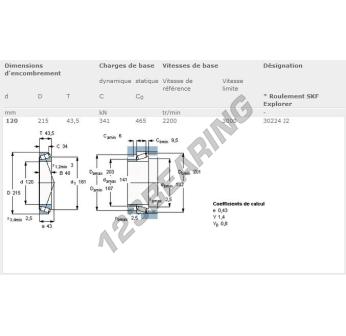 Das Rollenlager, bekannt als 30224-J2-SKF SKF, hat einen Innendurchmesser von 120 mm, einen Außendurchmesser von 215 mm und eine Dicke von 43.5 mm.