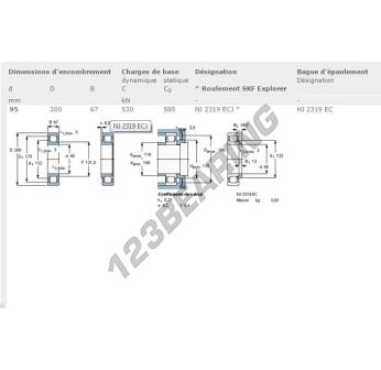 Das Rollenlager, bekannt als NJ2319-ECJ-SKF SKF, hat einen Innendurchmesser von 95 mm, einen Außendurchmesser von 200 mm und eine Dicke von 67 mm.