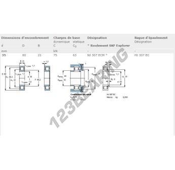 Das Rollenlager, bekannt als NJ307-ECM-SKF SKF, hat einen Innendurchmesser von 35 mm, einen Außendurchmesser von 80 mm und eine Dicke von 21 mm.