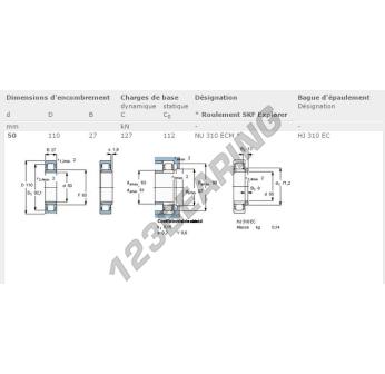 Das Rollenlager, bekannt als NU310-ECM-SKF SKF, hat einen Innendurchmesser von 50 mm, einen Außendurchmesser von 110 mm und eine Dicke von 27 mm.