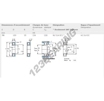 Das Rollenlager, bekannt als NU314-ECJ-SKF SKF, hat einen Innendurchmesser von 70 mm, einen Außendurchmesser von 150 mm und eine Dicke von 35 mm.