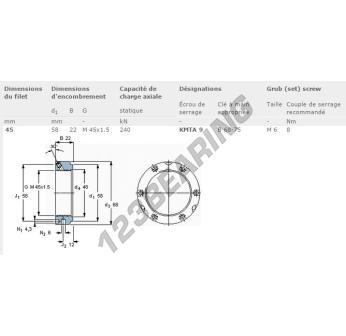 Diese Mutter hat einen Innendurchmesser von 45mm, einen Außendurchmesser von 58mm und eine Dicke von 22mm.