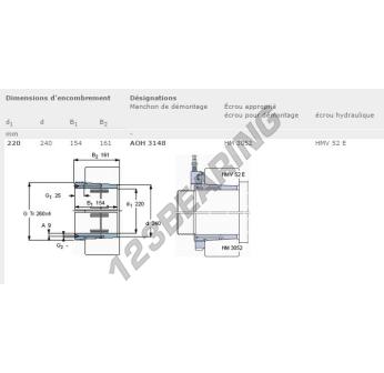 Das Spannhülsen, bekannt als AOH3148-SKF SKF, hat einen Innendurchmesser von 220 mm, einen Außendurchmesser von 240 mm und eine Dicke von 154 mm.