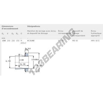 Das Spannhülsen, bekannt als H3140-SKF SKF, hat einen Innendurchmesser von 180 mm, einen Außendurchmesser von 250 mm und eine Dicke von 150 mm.